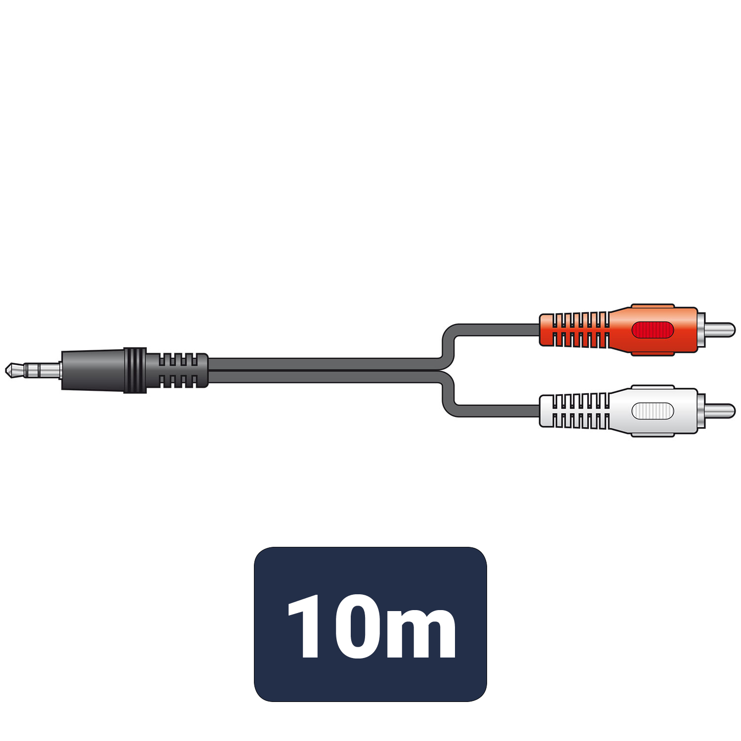 3.5mm stereo plug to 2 x RCA plugs lead 10.0m