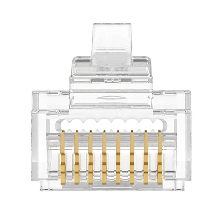 Pass-through RJ45 connectors designed for quick and easy use. The transparent cover and pass-through hole allow you to conveniently feed your wiring through and check the sequence before crimping. The solid copper contacts contain a sharp edge which cuts the wiring during the crimping process.