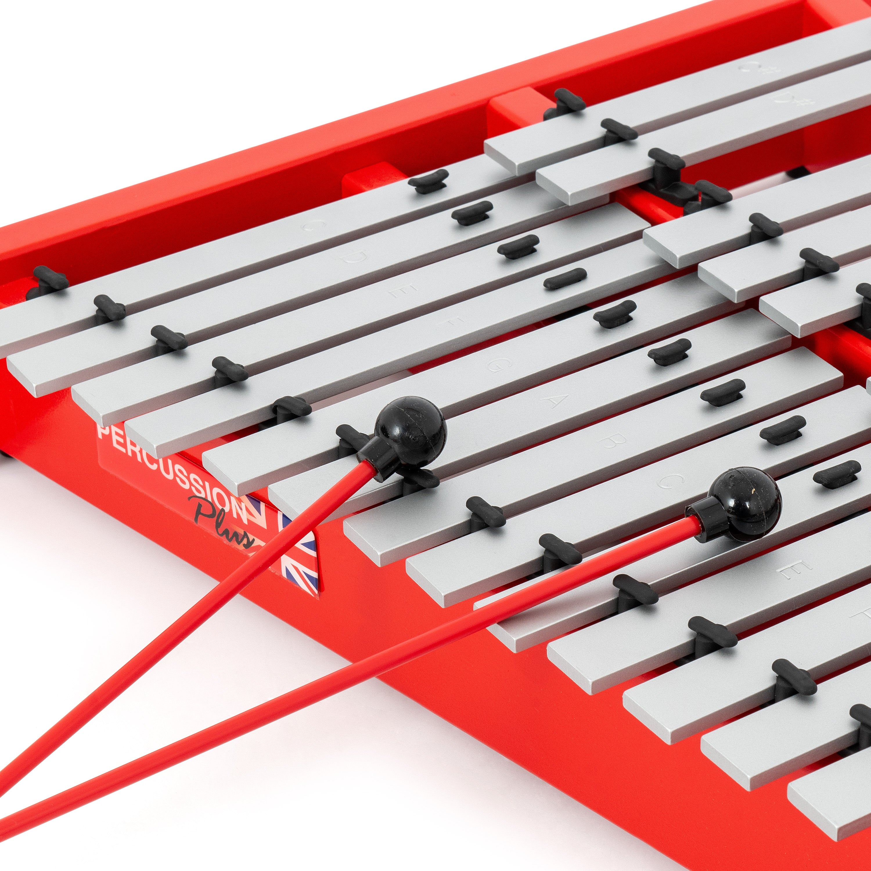Introducing the Percussion Plus Classic Red Box fully chromatic alto glockenspiel This instrument is part of the well known Percussion Plus Classic Red Box range of instruments. Called so as the range has become well known for the accuracy of its tuning, certainly when compared to other models currently available. This instrument comprises of a solid wooden base frame produced from selected, solid wood so the sound reverberates and carries exceptionally well. Like all the other models in the Percussion Plus Classic Red Box line-up, this instrument has precision cut tone bars for exceptionally accurate tuning and the quality of sound is superb. The sound is consistent and resonant. It has more than enough power for occasional use in the school band. The instrument is lightweight and easy to carry which makes it perfect for the classroom or music room. The note range is C52 to A73 and it also comes complete with two beaters More about our Percussion Plus Red Box range The Percussion Plus Red Box range instruments have all been completed to the highest standard. Extra care has been taken to ensure that the instruments have followed precise tuning control to A440 (pitch standard). They are also easy to recognise with the signature sprayed red finish to identify them as a genuine Percussion Plus product. Thanks to their reliability and high quality, they have always been a very popular choice with players and particularly schools, for over 25 years. Their excellent tuning stability and their robustness mean they last very well in what can sometimes be a challenging environment within a school. Tuning compass